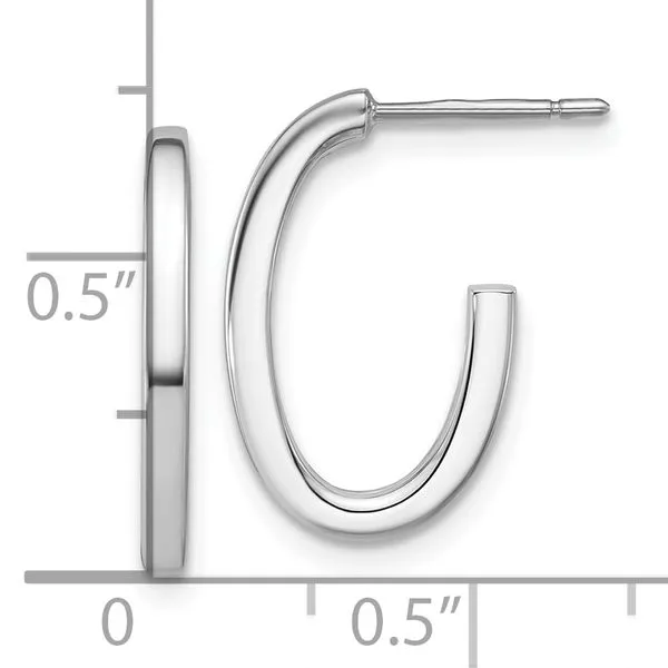 Leslie's 14K Whitehite Gold Polish 2.0mm Flat Oval Post J-Hoop Earrings Image 3 J. West Jewelers Round Rock, TX